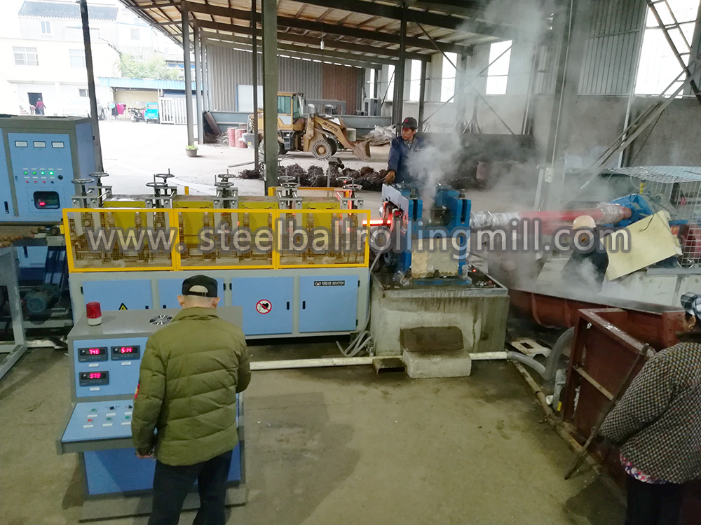 2、鋼球坯料在軋制前在感應加熱爐中被加熱到合適的溫度。